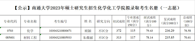 关于2023年硕士研究生招生一志愿拟录取考生的公示