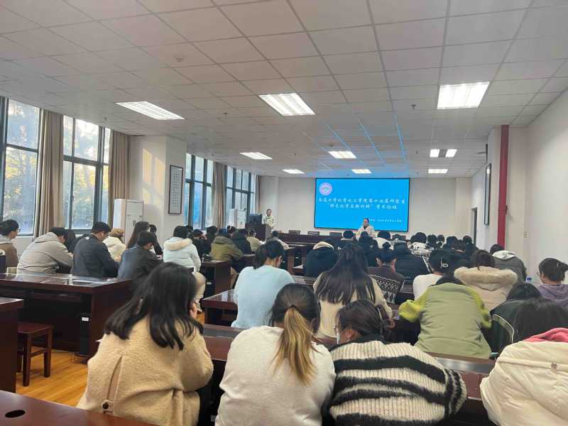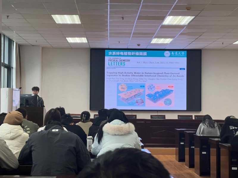 会上研三孙杰同学,研二郝保玖等同学向学弟学妹们分享了他们的研究课题以及论文成果,其中有些成果发表在有机化学通讯,先进能源材料,纳米快报等国际著名期刊上,为大家做到了模范带头作用。
