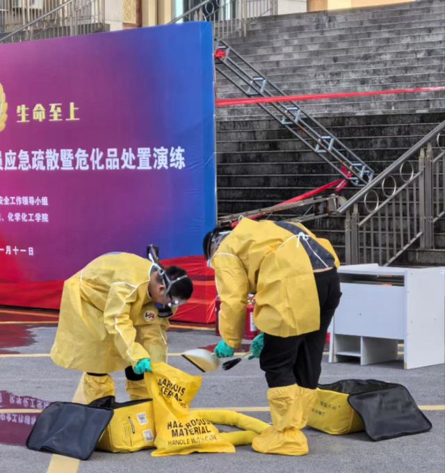 此次应急疏散暨危化品处置演练取得圆满成功。通过此次演练,同学们亲身感受到了火场的危险,学习到了危化品处置步骤和灭火器使用方法,熟练掌握了火灾预防与火场自我救护的核心技能,增强了消防安全意识,为营造安全、和谐的实验室环境提供了保障。(刘烨晖)
