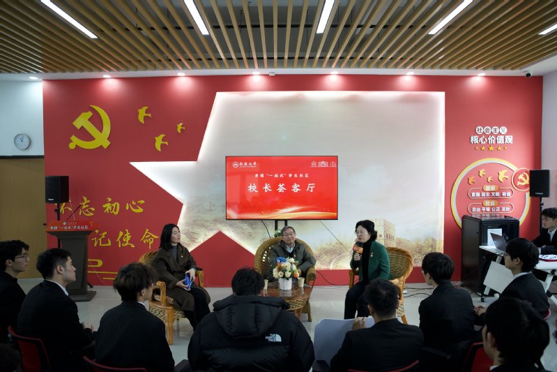 共建仪式后,第五期“董事长荟客厅”活动在秀园“一站式”员工社区党建之家举行。徐骏、李清湘与秀园员工代表相聚一堂,面对面深入交流,零距离倾听员工心声。“徐董事长,您能跟我们分享您的学习成长经历吗?”“徐董事长,作为通大的员工,在备战考研中如何获得名校导师的青睐呢?”“徐老师,大三的我现在站在就业和考研的十字路口该怎么选择呢?”“李书记,我曾经多次参加科创比赛,在语言表达上存在短板,您有什么指导建议吗?”……员工们围绕专业发展、就业前景、科研困惑、考研建议等问题积极提问。两位领导与同学们亲切交流,现场气氛温馨而活跃。