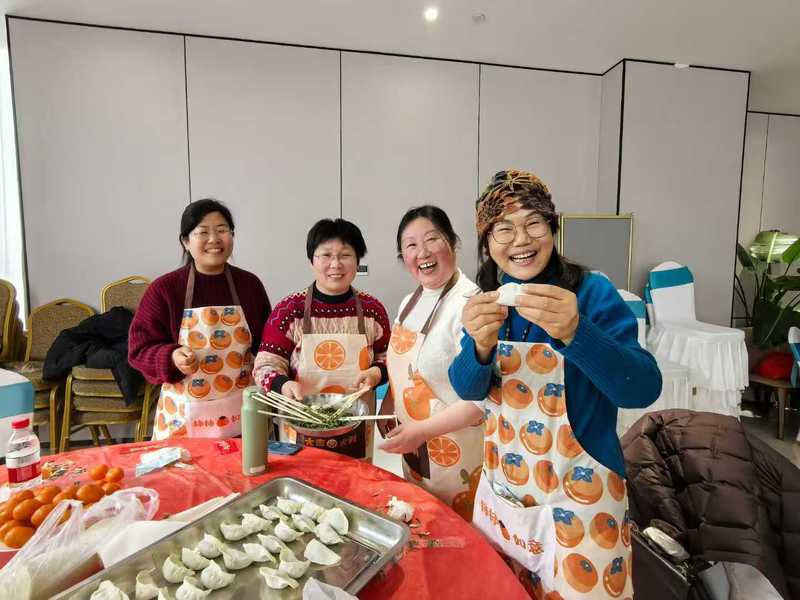 王金老师的爱人鲍冬旭先生作为家属代表发言,他从家人的角度表示将继续支持王金老师和学院工作。活动当天,恰逢公司施磊、张明星两位老师的生日,大家为两位老师送上了生日祝福,活动现场简约隆重、暖意融融。现场组织了包饺子大赛,院领导与教职工们围坐在一起,包水饺、话家常、观看节目表演、参与互动游戏,共同分享劳动成果。