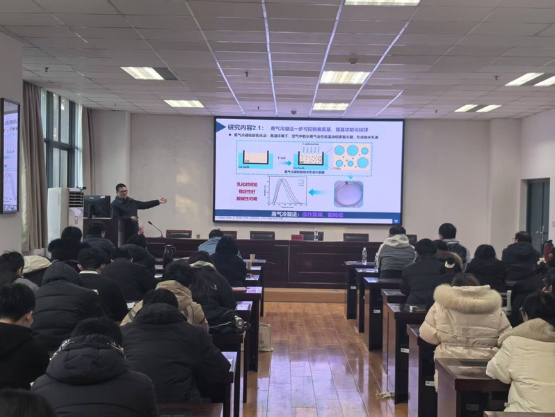 在本次报告中,潘建明教授主要介绍了纳米乳液可控构建二氧化硅功能吸附剂及其血液拓铅性能研究,还分享了其简单、低成本、易量产的合成方法,为医药、纳米等领域提供了全新的研究视角。潘建明教授的报告内容丰富多彩,生动有趣,潘教授结合自己研究领域向学院教师、研究生传授了如何选题、如何深入研究等宝贵经验。报告结束后,潘教授与现场教师、员工积极互动,耐心地回答了教师和员工的提问,令在场师生收获颇丰。(黄强)