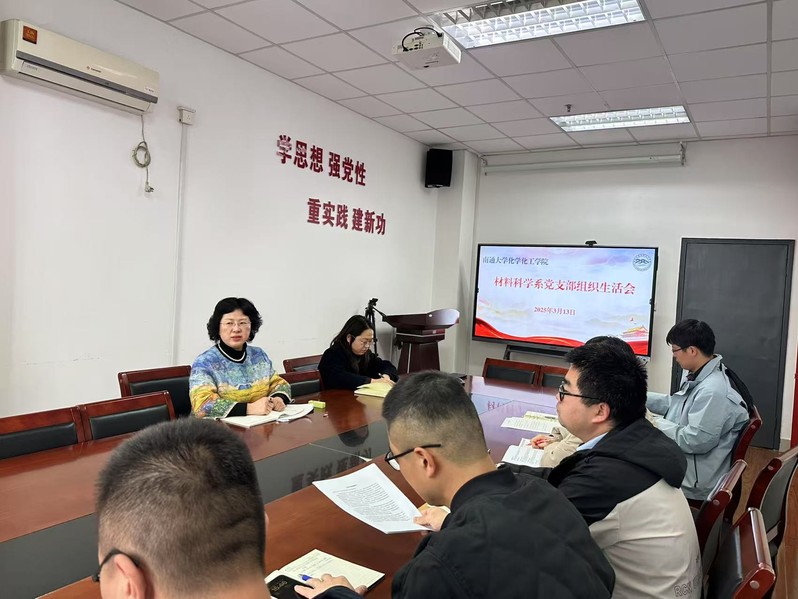 2025年3月13日,材料科学系党支部于纺化楼C502 开展组织生活会,公司党委书记李清湘出席并指导会议,朱晓蓉主持会议,支部全体党员积极参与。