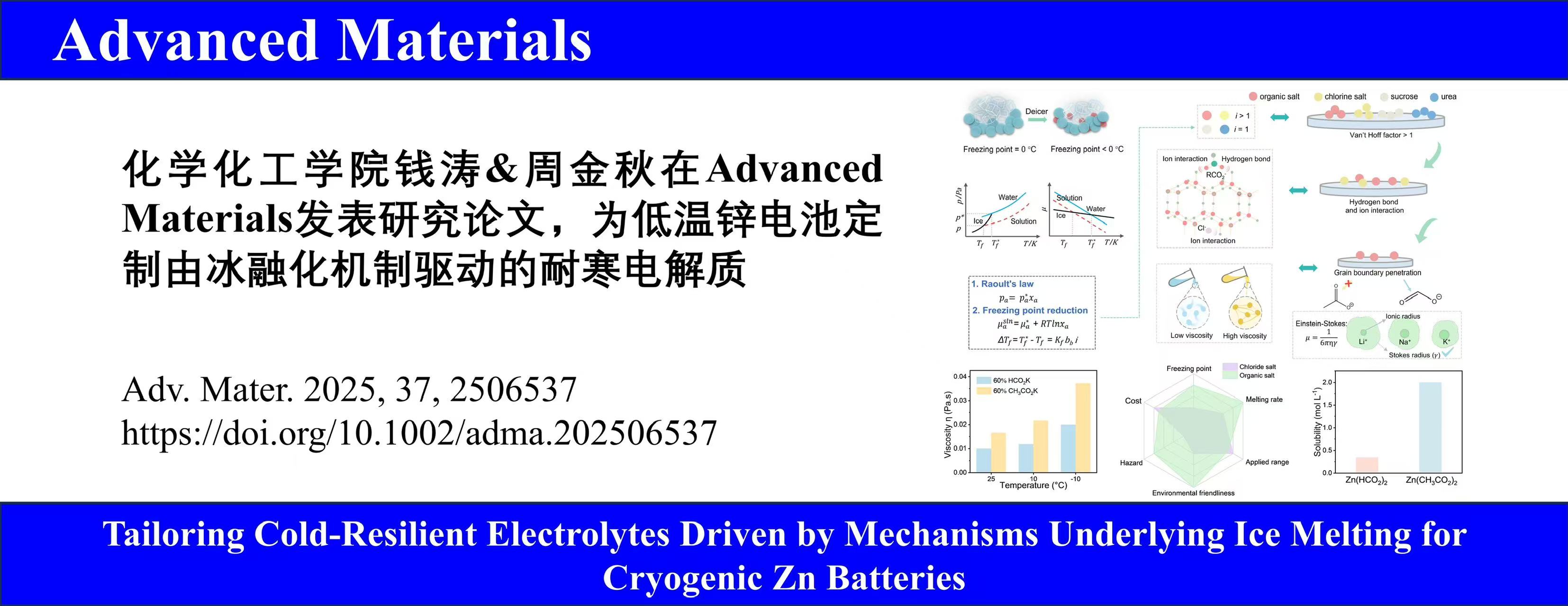 yl1111永利集团钱涛&周金秋最新AM:为低温锌电池定制由冰融化机制驱动的耐寒电解质