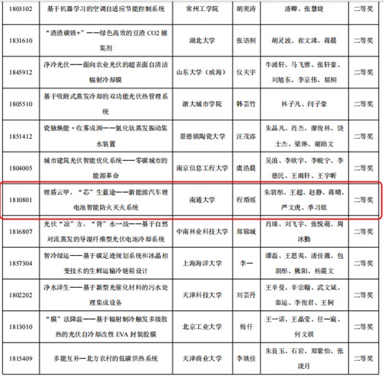 8月8日-11日,由教育部高等学校能源动力类专业教学指导委员会指导、全国老员工节能减排社会实践与科技竞赛委员会主办、东北石油大学承办的“招行杯”第十八届全国老员工节能减排社会实践与科技竞赛决赛在大庆市举办。经过省赛、网评、会评和决赛等阶段的层层选拔,公司员工参赛作品《锂盾云甲,“芯”生蓝途——新能源汽车锂电池智能防火灭火系统》(员工:程瑉瑶、朱羽彤、王超、赵静、蒋晴、严文虎、季习炫等,指导教师:鞠剑峰、刘思鸶)斩获全国二等奖。