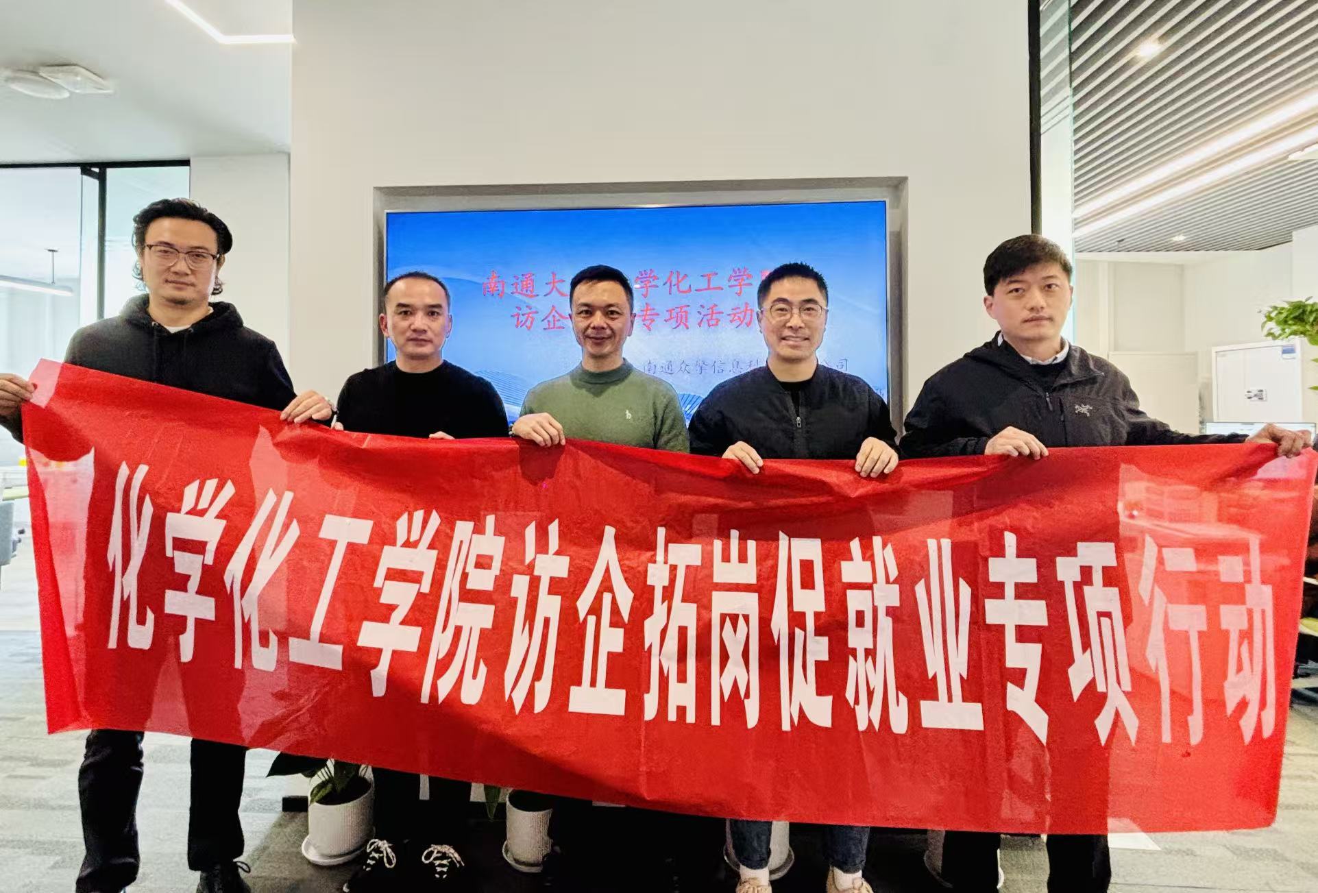 为深入贯彻落实高校毕业生就业工作决策部署,深化产教融合与校企合作,12月16日,学院经理助理、材料科学系主任曹宇锋,校图书馆馆长助理、知识产权信息服务部主任周耀一行赴南通市中央创新区紫琅科技城入驻企业开展“访企拓岗促就业”专项活动。