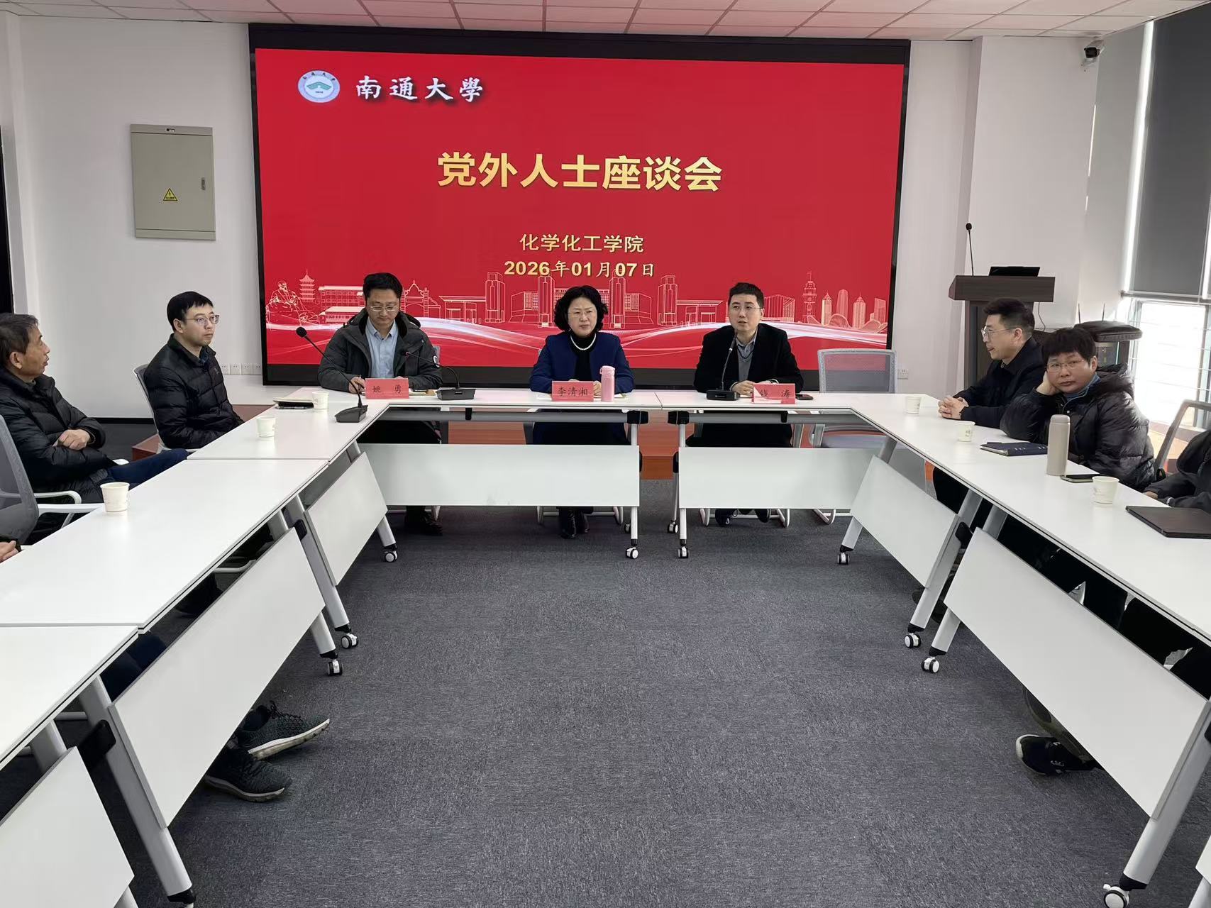 1月7日下午,化学化工公司党外人士座谈会在纺化楼C-719举行。学院民主党派代表与群众代表齐聚一堂,围绕学院发展建言献策。公司党委书记李清湘,公司党委副书记、副经理(主持工作)钱涛出席座谈会,会议由统战委员姚勇主持。