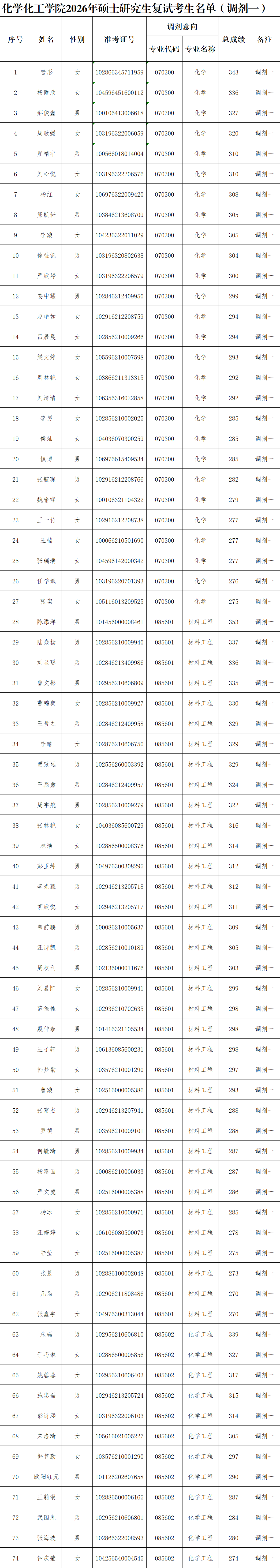 yl1111永利集团2026年硕士研究生复试考生名单(调剂一)